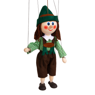 Jsem dřevěná loutka, co se ovládá shora pomocí vahadla se čtyřmi provázky. Vyhrají si se mnou všechny děti, co se nebojí vyzkoušet loutku s klasickým vedením.