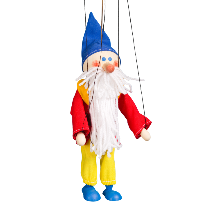 Jsem loutka vyrobená z voňavého dřeva. Ovládám se snadno. Shora pomocí vahadla s čtyřmi provázky. Zvládnou to všechny holčičky i kluci zhruba od tří let.