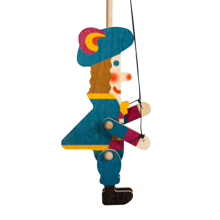 Jsem dřevěná loutka v nápaditém podání. Jsem konstruován velmi jednoduše – štíhlé tělo, tyč na držení a ovládání, ruce na dvou provázkách a pohyblivé nožičky. Díky lehkému ovládání se mnou dokážou hrát nejkrásnější pohádky i ty nejmenší děti.