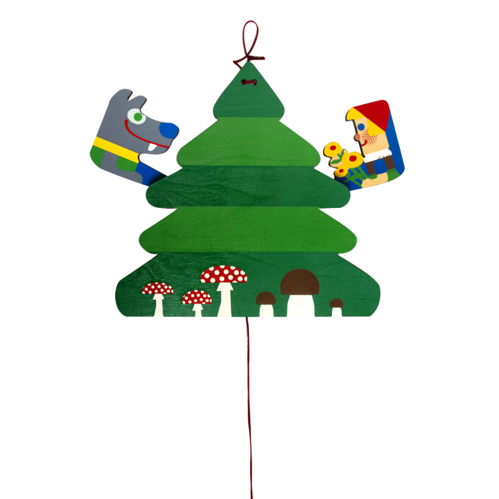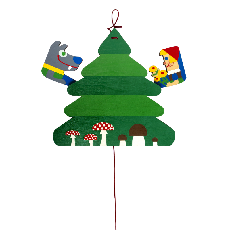 Vypadám jako obyčejný strom, ale stačí zatáhnout za šňůrku a překvapím tě pohádkou. Zpoza stromu vyskočí Vlk a Karkulka. Pohádková dekorace, která je zároveň veselou dřevěnou hračkou. Bavím děti i dospělé.