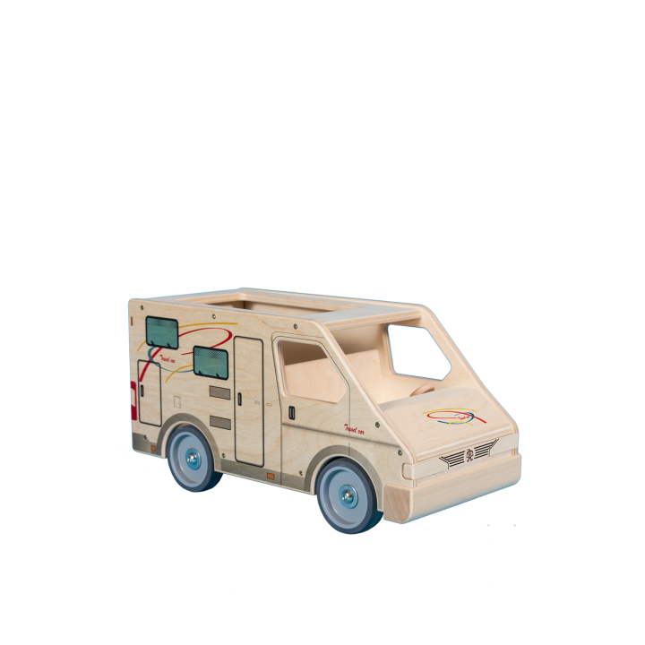 Jsem poctivě vyrobené, pevné, dřevěné auto s místem pro řidiče a spolujezdce. V zadní části mám velký úložný prostor přístupný z otvoru ve střeše nebo zadními otvíracími dveřmi. Perfektní jízdní vlastnosti zajišťují kvalitní pogumovaná kola.